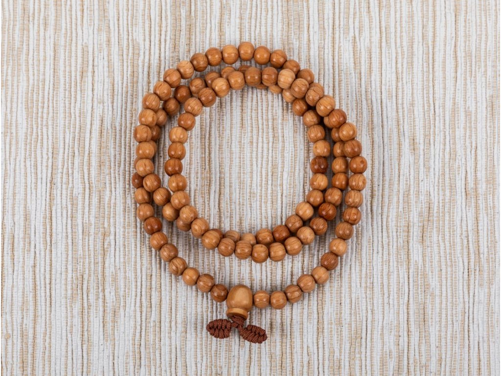 Buddhistická mala dlouhá - světlé dřevo se znakem 8 mm