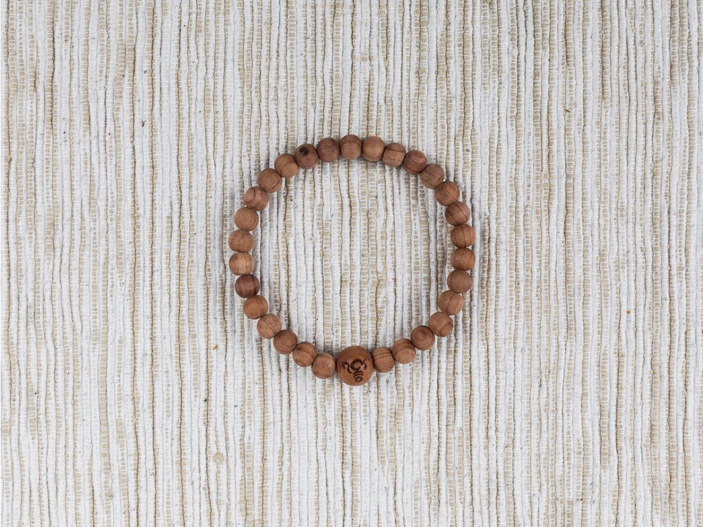 Buddhist mala short - wood with large symbol 8 mm