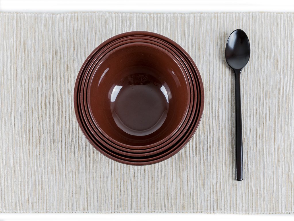 Sada 5 misek s víkem a dřevěnou lžící.